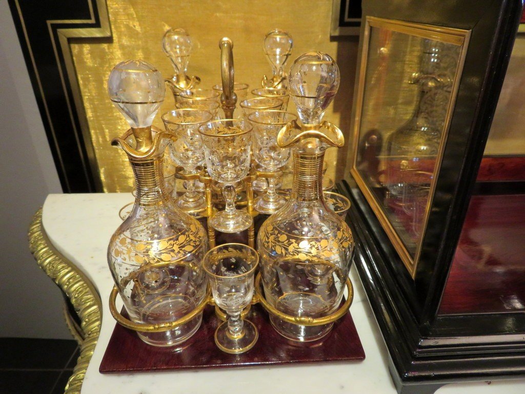 Magnifique intérieur en cristal doré et ciselé à décor de feuillage comprenant
