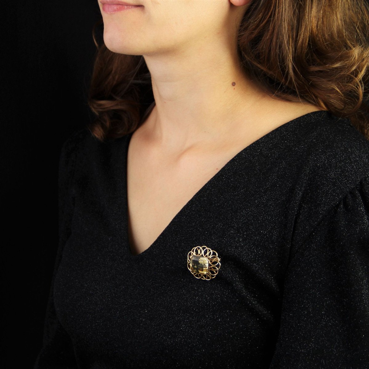 Découvrez la fiche produit de cette Broche Vintage Fleur d'Or Et Citrine en ligne.
