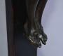 Christ en bronze coulé à la cire perdue. Croix en bois probablement d'origine. La sculpture de belle qualité est certainement l'oeuvre d'un bon artiste. Il serait intéressant et profitable de rechercher de qui il s'agit. Je ne connais pas grand chose à l'art Européen mais le sculpteur qui a pensé à ce bourrelet de peau au dessus du trou du clou des pieds n'était pas un simple artisan. Belle fonte, finition soignée au racloir. Belle patine d'origine. Bon état, il manque les clous d'origine que l'on peut faire gracieusement sur demande.