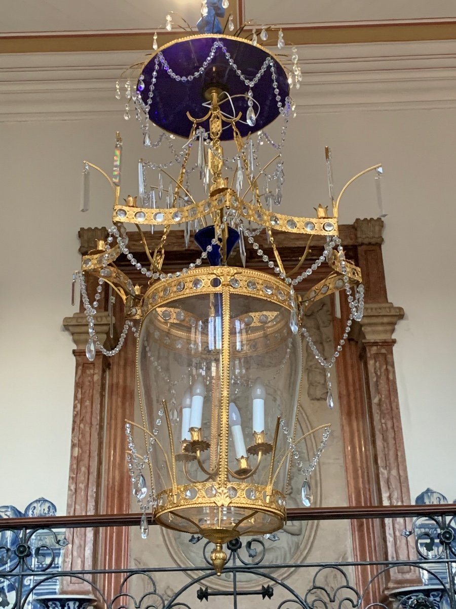 "Tres Grand Lustre Lanterne Neo-classique Bleu à 12 Lumières "