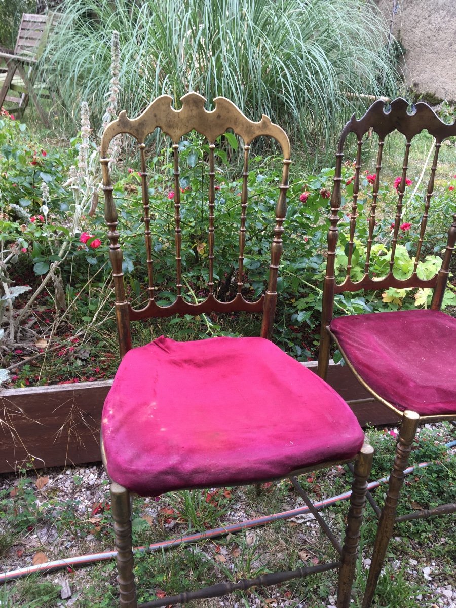 Paire de Chaises chiavari (tiffany). Conçue par giuseppe gaetano descalzi dans les années 1950, la chaise a atteint le statut d’icône. De plus, la chaise a son tissu de velours d’origine.