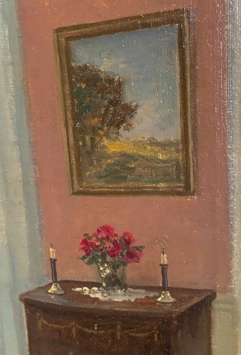 Une vue de la bonne époque de Wm Henriksen, dans laquelle la précision du trait concourt à la vibration de la lumière, si chère à l'école danoise d'intérieur, (glorifiée par W. Hammershoi et incarnée par les noms de Carl Holsoe, Ilsted ,Hilsøe, Alfred Broge....)