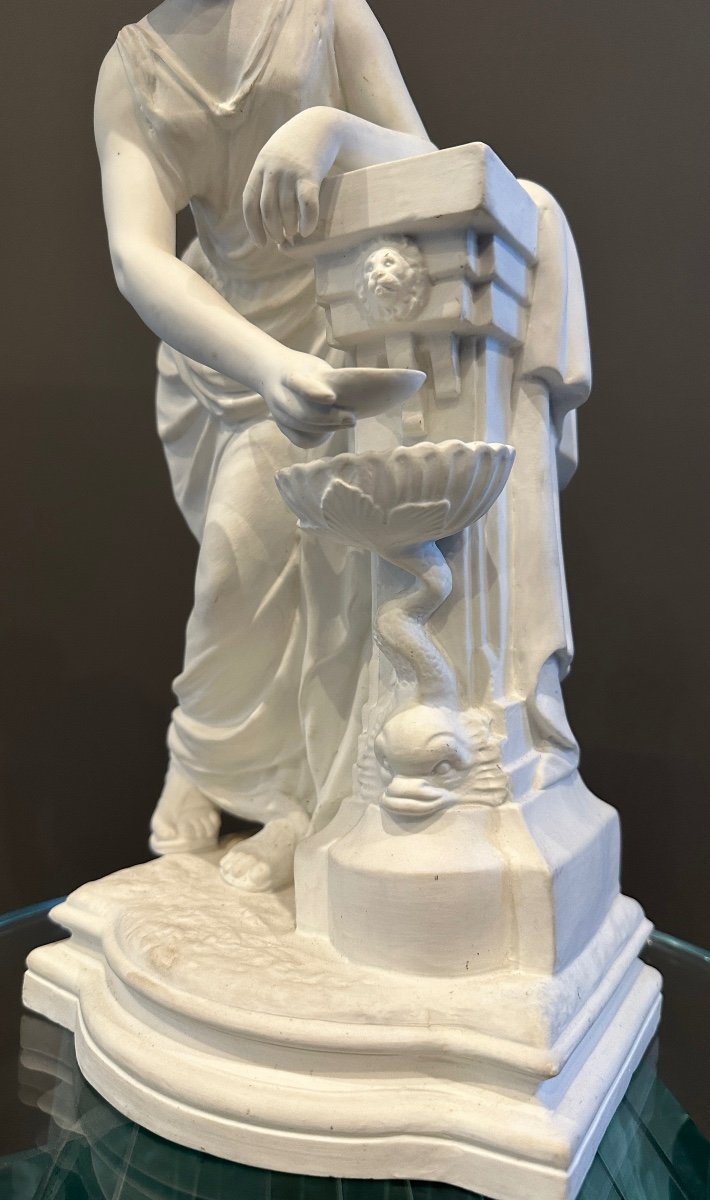 Ravissante Sculpture en Biscuit Représentant une Jeune Femme à la Fontaine.