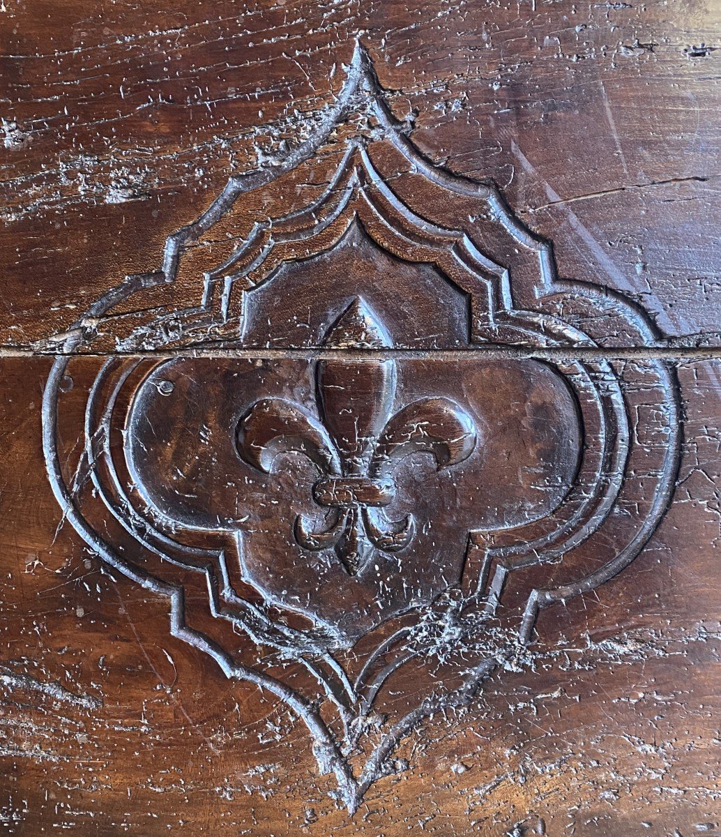 Coffre En Chêne Orné De 2 Fleurs De Lys XVI ème