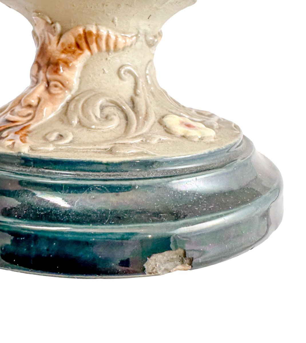Cette remarquable amphore provient du célèbre studio de Wilhelm Schiller & Son en Bohême, vers 1880. Il s'agit d'une pièce exceptionnelle et rare de l'art de la majolique, fabriquée avec une attention méticuleuse aux détails, comme en témoigne son délicat motif floral.