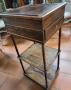 Plateau gainé de cuir(usures) les montants figurent des bambous,réunis par deux tablettes d entretoise,(petites fentes au placage) les pieds munis de roulettes de bronze