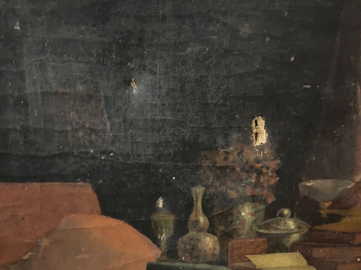 Vous noterez que cette œuvre est vendue dans son jus, non nettoyée, néanmoins nous pouvons avoir de belles teintes après nettoyage et avoir une belle surprise.