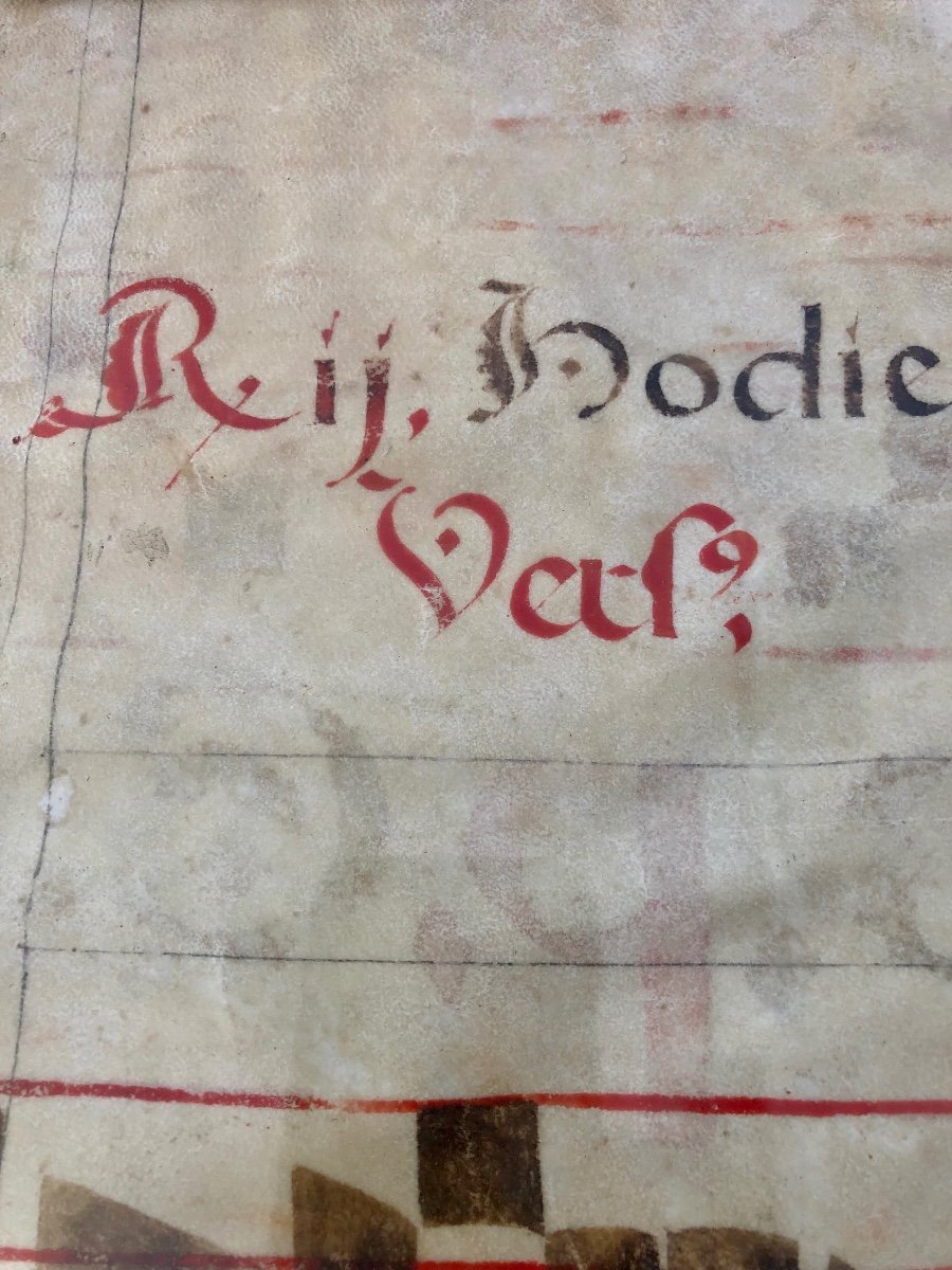 Page de psautier XVI Espagne. Utilisés dans les monastères pour l'oraison, les psautiers étaient annotés pour le chant grégorien. Peau tendue et peinte.