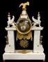 La structure générale de cette pendule reste Directoire Consulat mais les Sphinges , les Bustes d'Egyptiens en gaines et l'aigle à l'amortissement annoncent déja le style Empire.