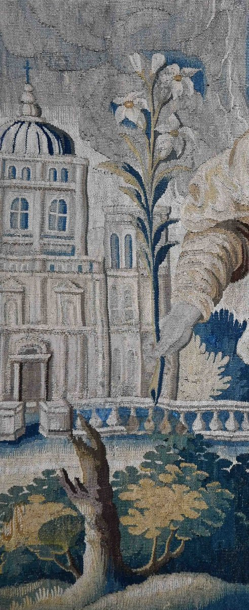 Dans le respect des traditions, cette magnifique tapisserie a été soumise à un nettoyage en profondeur, à la pose d'une doublure en lin cousue à la main, et à une vérification minutieuse par nos experts de l'Atelier artisanal de la Galerie Lissier. Elle est désormais prête à orner votre intérieur.