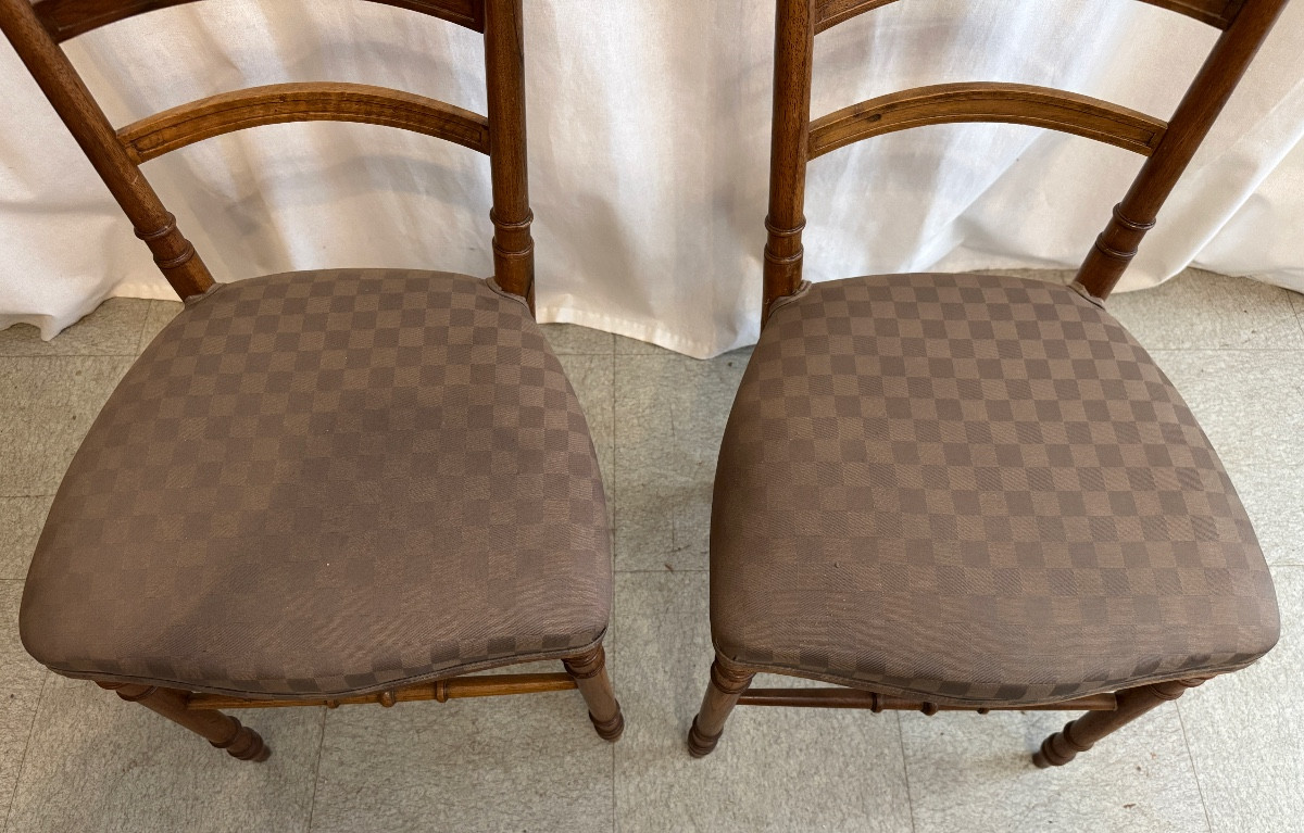 l'assis de forme trapèze est regarnie en crin et sublime ainsi par la partie avant chantournée.(h 46 cm)