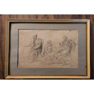 Ancien dessin au crayon sur papier, croquis signé XIXe siècle