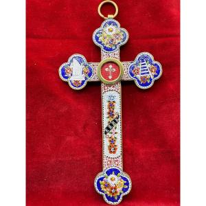 Croix pectorale (stauroteca)en mosaique romaine avec fragment de la Sainte Croix à l'interieur