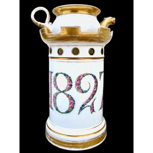 Veilleuse en porcelaine à décor floral et rehauts dorés, daté de 1827. France.
