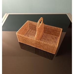 Si vous recherchez un détail d'ameublement qui incarne l'essence du design vintage le plus raffiné, ce « Porte-revues en plexiglas et paille de Vienne années 70 » est l'objet qu'il vous faut. Une pièce authentique de 1970, capable de conjuguer la modernité industrielle du plexiglas à la tradition artisanale de la paille de Vienne.