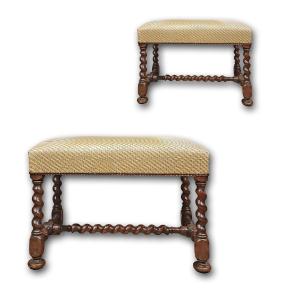 "PAIRE DE TABOURETS EN NOYER SECONDE MOITIÉ DU 17ème SIÈCLE"