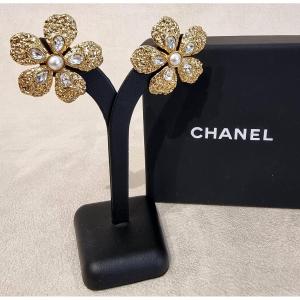 Chanel Paire De Boucles D'Oreilles Métal doré & cristal