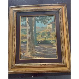 Huile sur toile, transférée sur carton et insérée dans un cadre ancien.