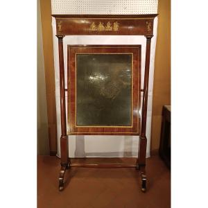 Élégant psyché en noyer massif sculpté, orné de détails en bois doré et ébénisé. De forme linéaire, il repose sur des pieds galbés et est doté d'un miroir mobile d'époque. Décoré de motifs végétaux et figuratifs classiques (Bacchantes, Cupidon, divinités mythologiques, etc.) réalisés selon la technique de la cire perdue, il est orné de détails en bronze doré qui lui confèrent un raffinement supplémentaire. Cette pièce de grand goût et de grande classe saura meubler tout espace avec élégance et une touche d'antiquité. Fabriqué par Lucchese (Lucques, Toscane, Italie), époque Empire, début du 19ème siècle.