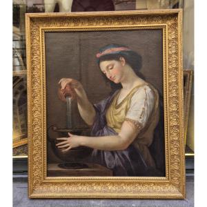 hébé, Tableau par T. Conca Rome Italie XVIIIe Siècle