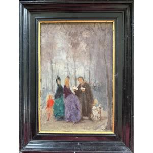 Ecole Française Impressionniste -Elégantes et enfant au jardin, circa 1890
