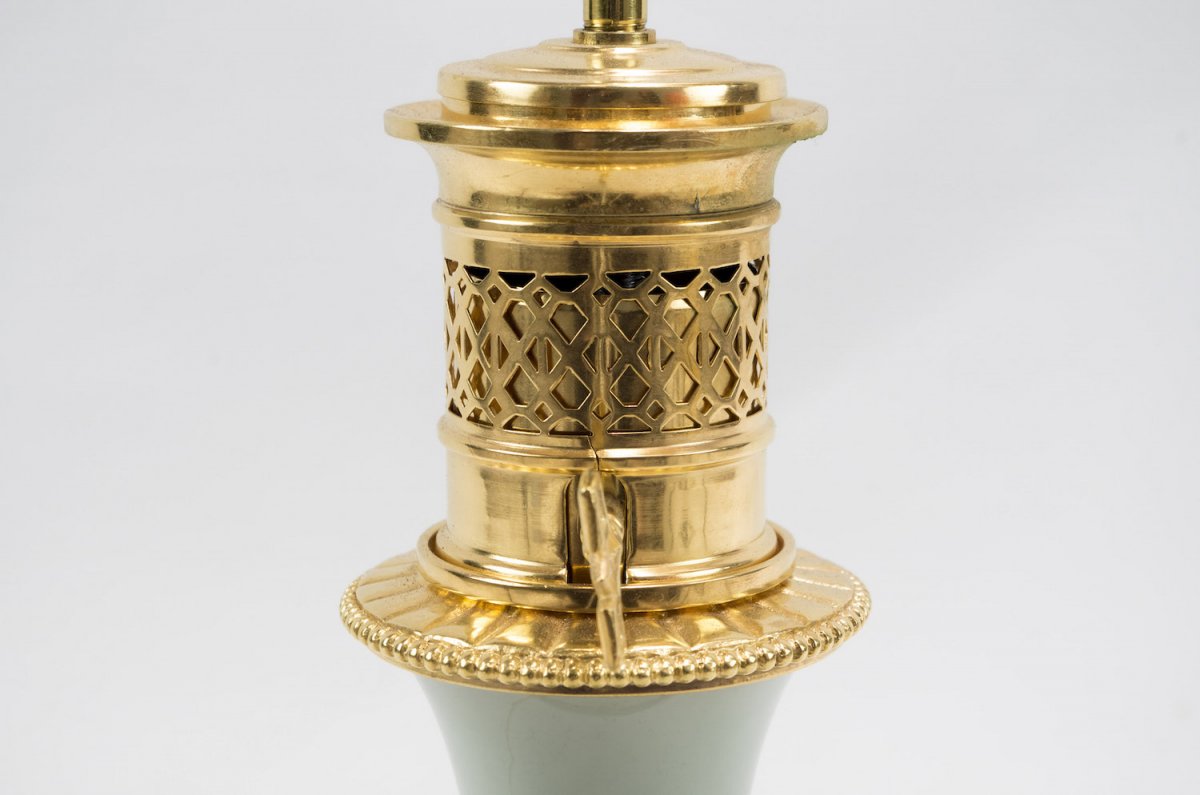 Monture en bronze ciselé et doré. Base carrée à pans coupés surmonté d’un tore en forme de couronne de laurier.