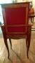 Petite commode-écran ayant à l'arrière un rideau escamotable, en velour rouge, Les trois faces et le plateau sont marquetés en un seul bois: le prunier. Elle ouvre à trois tiroirs dont un latéral. L'ensemble repose sur quatre pieds cambrés. Epoque 18ème.