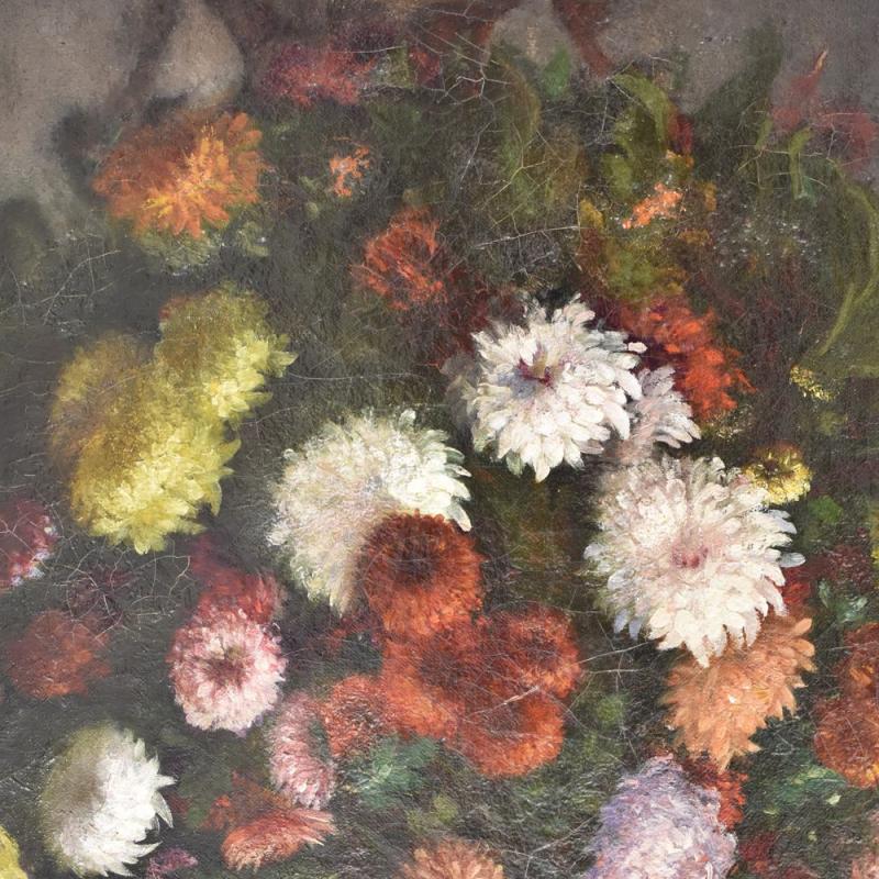 Tableau Composition de Fleurs, Dahlias, Chrysanthèmes et Marguerites, XIXè siècle. (QF232)