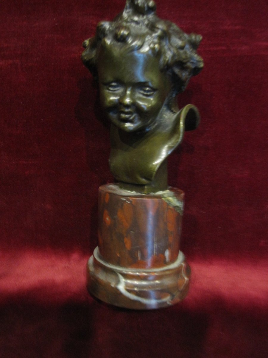 Petit Buste d'Enfant. Bronze Et Marbre. Signé C. Clovu. XIXème Siècle