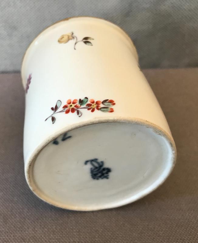 Petit pot en porcelaine de Frankethal vers 1775, décoré de fleurs et filets d'or.