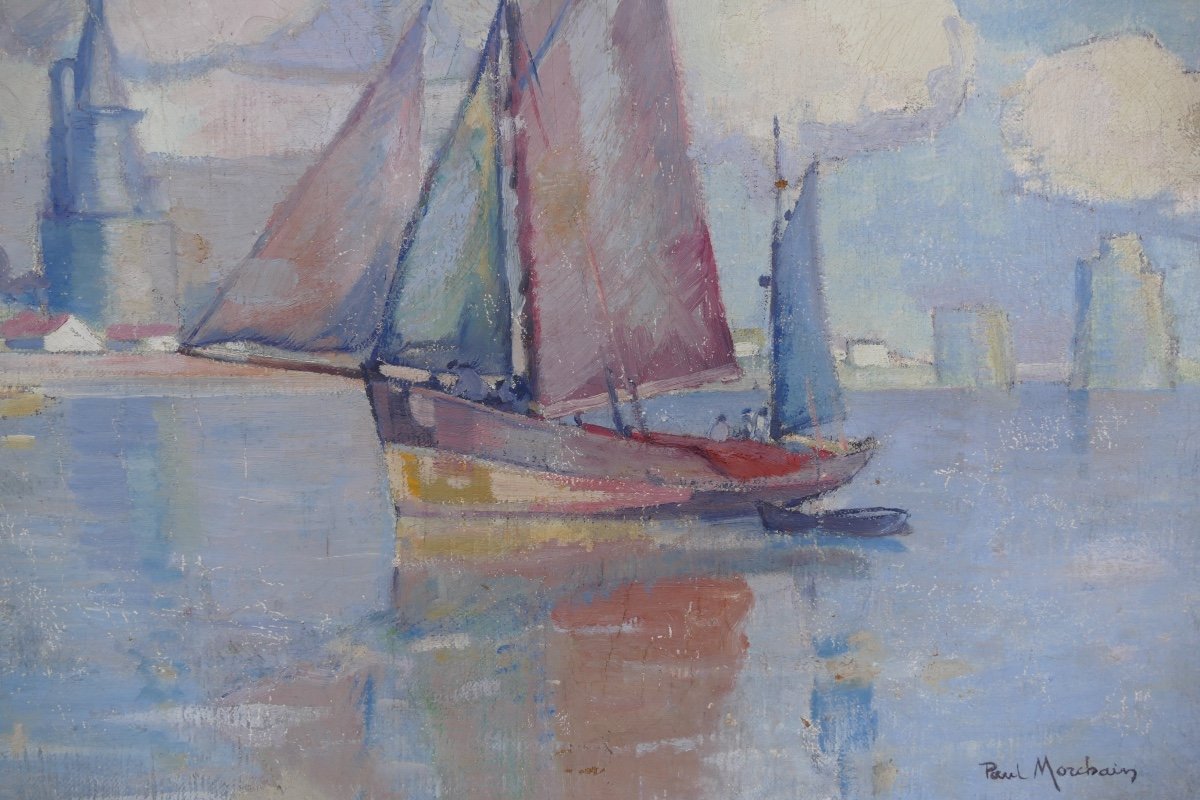 Morchain Paul Peinture 20è Bateaux De Pêche Sortant Du Port De La Rochelle Huile Signée