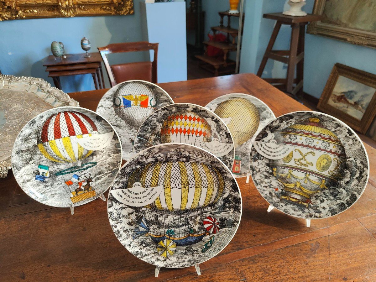 Magnifique Ensemble De 6 Assiettes Fornasetti De La Série Mongolfiere-photo-1