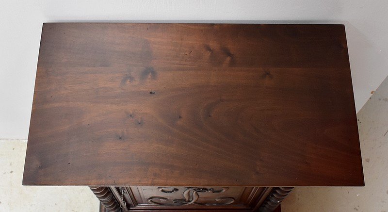 "Small Storage Cabinet In Solid Walnut, Gothic Taste - 1900s"