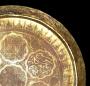 Décoré au centre de sept rondeaux aux motifs enchevêtrés pour certains et d'autres de calligraphies, rayonnant d'une rosace, séparés par six petits rondeaux décorés de treillis fins.
