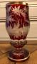 Bohemian crystal vase lined red and cut with rotating decoration engraved with a stag and a doe in the forest enhanced with gold fillets.