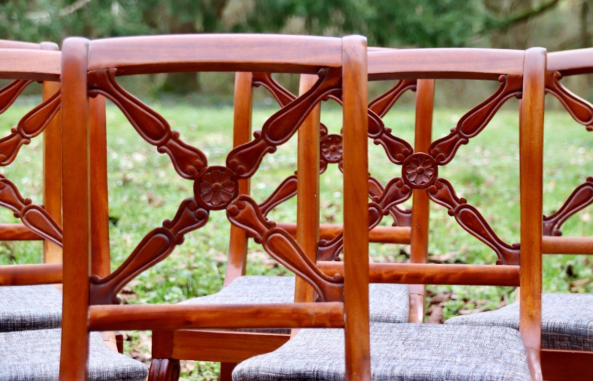 "Suite Of 8 Nineteenth Chassis Chairs In Mahogany"
