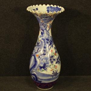 Large Japanese vase from the first half of the 20th century. Work in glazed and hand-painted ceramic with oriental-style floral decorations. Vase of beautiful size and great charm signed under the base (see photo). Vase that has undergone a minor restoration at the top (see photo), for antiques dealers and collectors. Overall in fair condition and in beautiful patina.