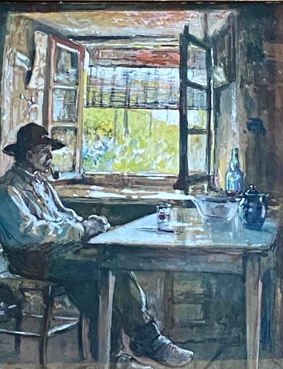 The peasant seated smoking his pipe near the window poses the present moment by bringing a great peace of mind to the whole.
