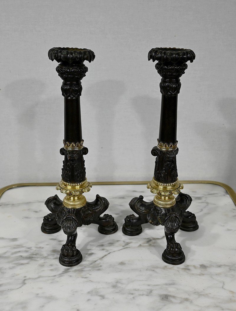"Pair Of Bronze Candlesticks, Restoration Period - Early Nineteenth"