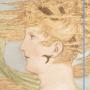 Grand médaillon Art Nouveau en plâtre peint figurant le profil de Diane.