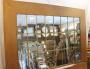 Pair of mirrors with a "1950s" design, mosaic of rare small rectangular mirrors with bluish iridescent mercury, nicely stitched (see photos) brass partition, mounted on a solid blond oak frame. These two mirrors can possibly be assembled by their base to form a large mirror wall with dimensions of 126 x 180 cm. Reference: Mondrian