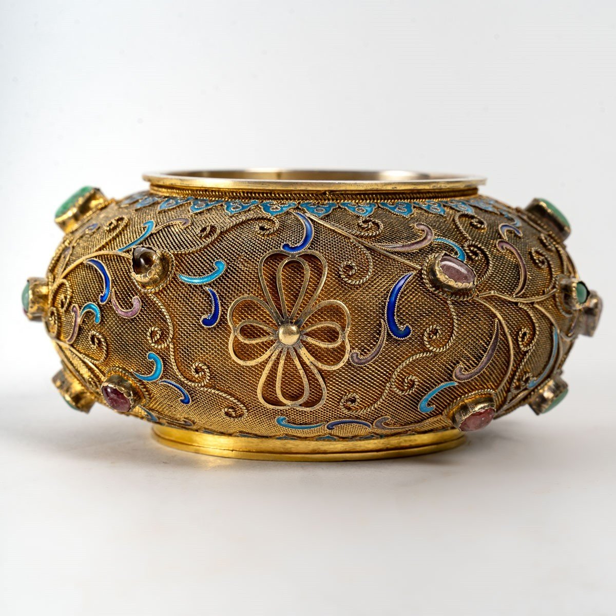 "China: Jewel In Filigree Vermeil, Enamels And Set Stones."