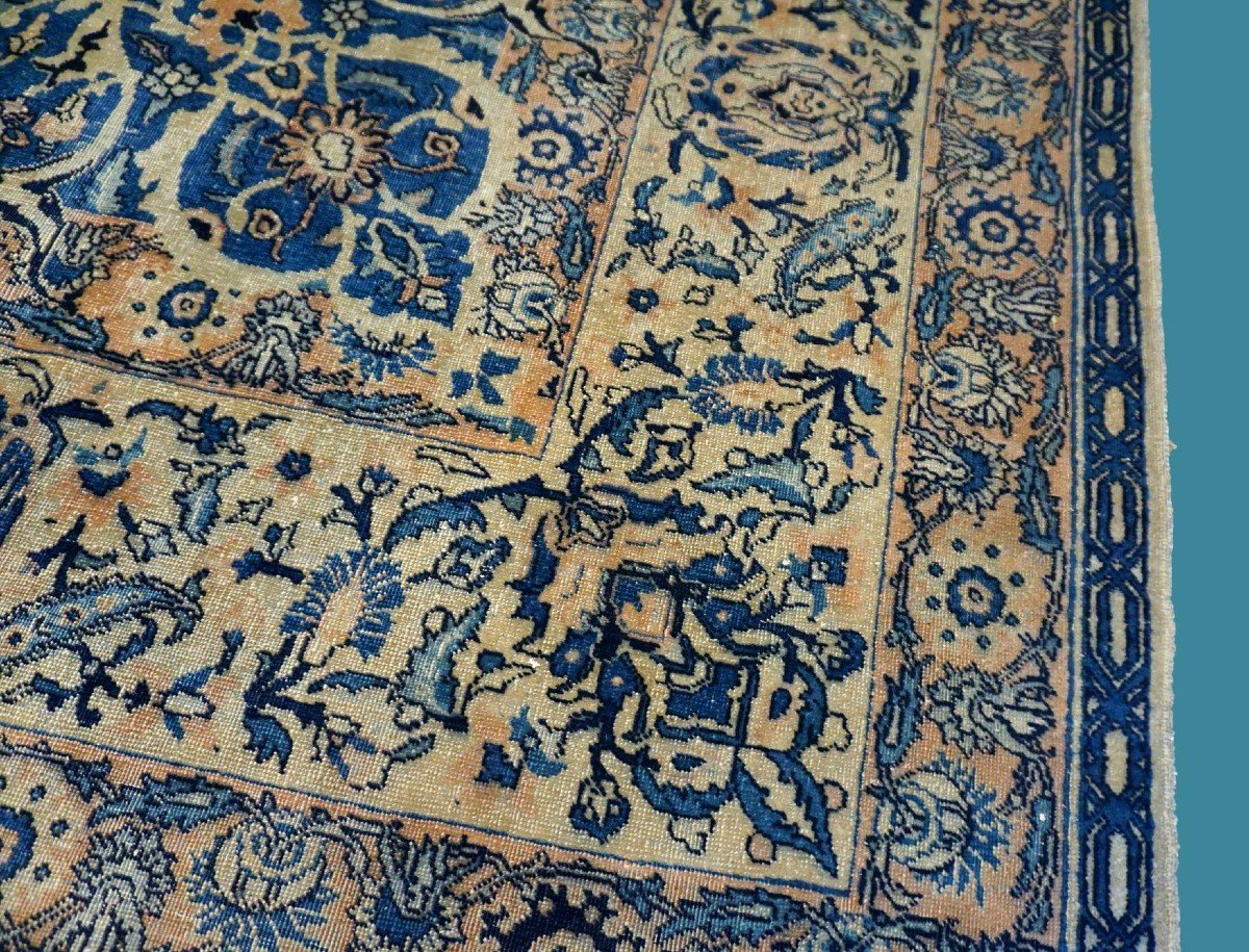 This category of carpets rightly counts among the best production of Iran. Fineness of execution, delicacy of colors, quality of materials used make it a rare collector's item. This piece is in very good condition for its age, without restoration.