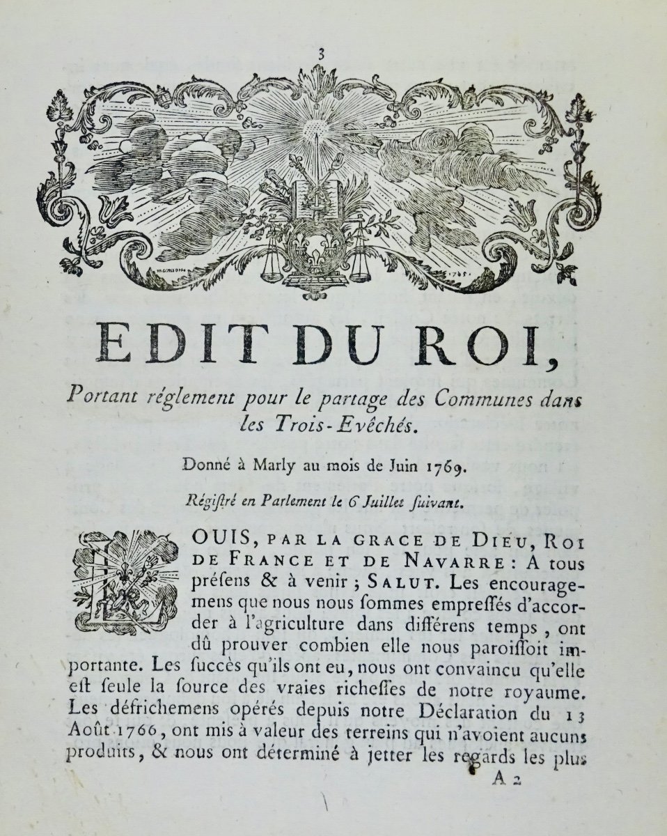 "Edict Of The King, Laying Down Regulations For The Division Of The Communes In The Trois-évêchés. 1769."