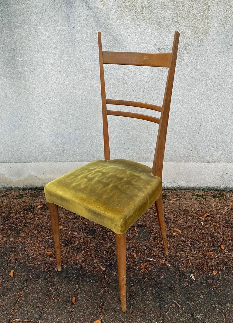 Roset , 6 Chaises à Hauts Dossiers En Frêne Circa 1950 , Style Gio Ponti
