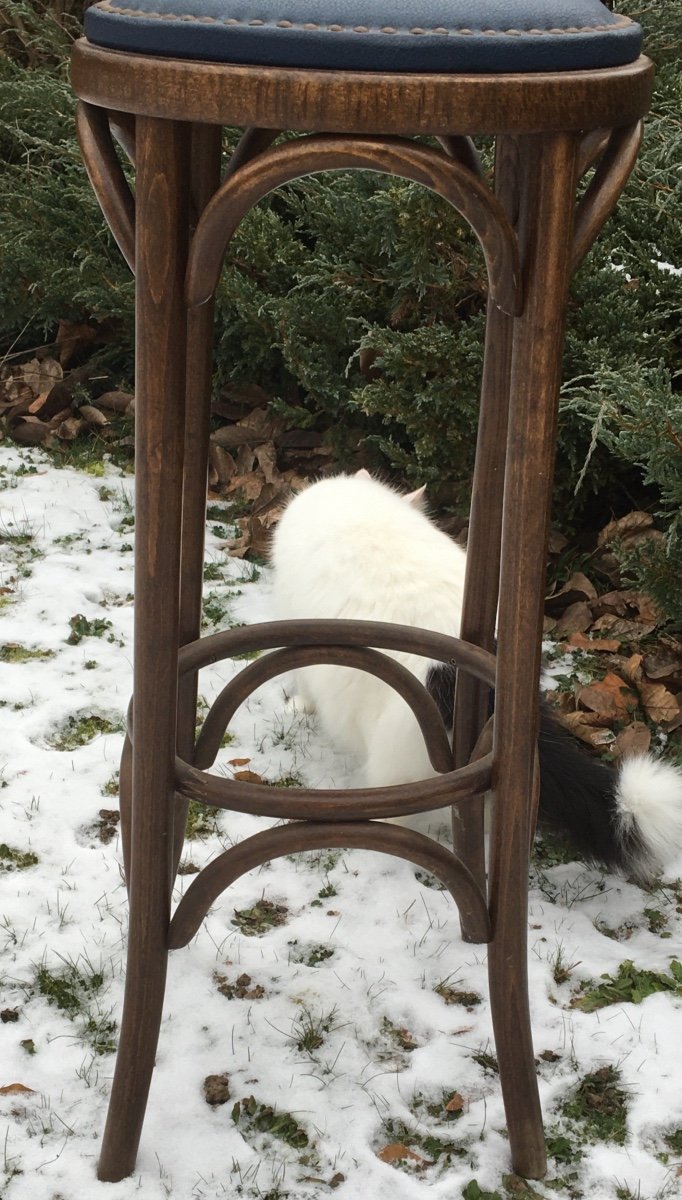Pretty bar stool in curved wood in the style of the Thonet company creations. Good used condition. Uniform patina. No play in the assemblies. seat in dark green leather surrounded by upholstery nails Height 80 diameter 35 a second identical one also available