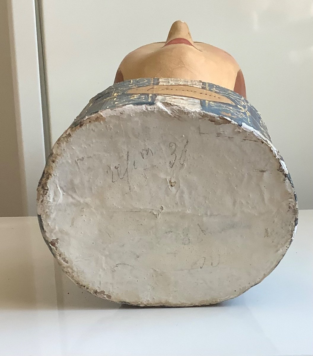 A woman's boiled cardboard fad from the 20th century. Origin: France. Period: 19th century. Material: boiled cardboard. Dimensions: 38 cm height x 14 cm width. Condition: Good condition in general except nose. Shipping: Colissimo