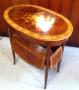 Art deco period server circa 1925. The oval shape offers a soft and bold line typical of this period. (open 83cm/63.5cm, h 41 cm) The trays are in walnut burl framed by a cross-grain net amaranth and boxwood all dressed up by a zebrano. The recessed belt is also in burl accompanied by a large ebony net. It contrasts with the two fine threads (also in ebony) which perfectly match a curved solid mahogany base. In the center of the painting, a leafy rose marquetry enhances the whole. Buffer varnish. Rare piece.