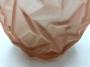 Lovely Art Deco vase in an ovoid shape, in satin pink pressed molded glass with geometric patterns in strong relief simulating a crumpled effect. The frosted treatment of the glass gives the vase multiple shades of powder pink, more or less accentuated by the play of light created by its relief. The vase has no chips or cracks. Weight: 1115 grams