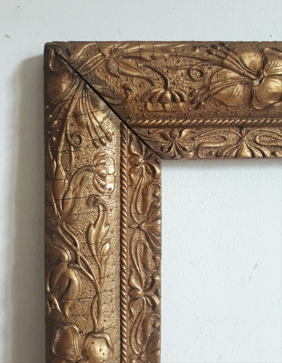 Frame in wood and gilded stucco from the 1900s, with Art Nouveau floral motifs.